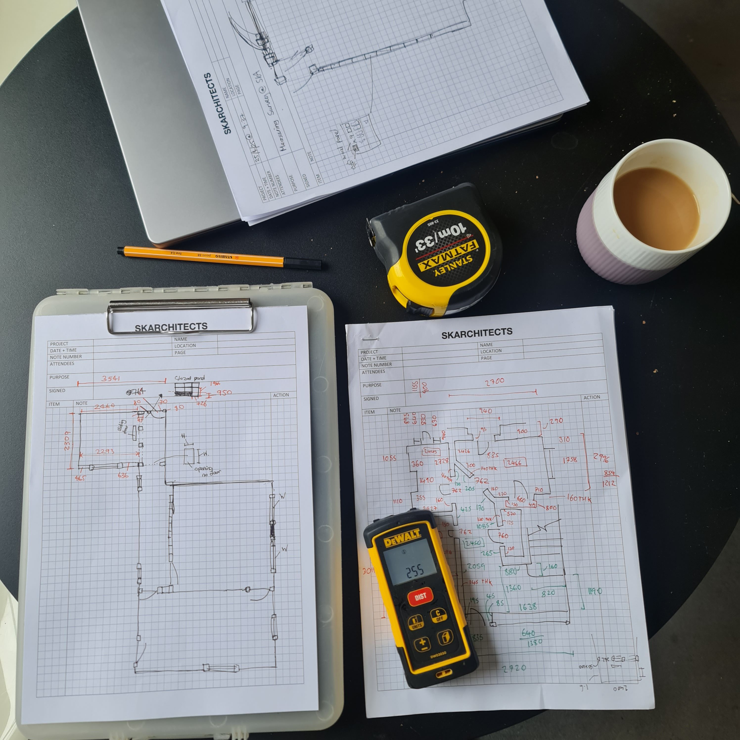 Everything was measured in millimetres. I started from a doorway and worked my way around the space. I could already see that with more experience, you naturally get a better sense of common dimensions. After measuring my first room, the second and third spaces became much easier.